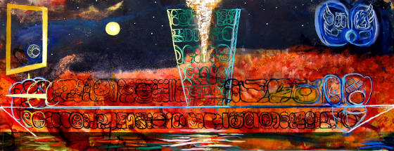 NIGHT SPIRITS mixed media on paper (22" x 60")
